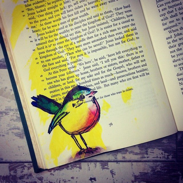To get an idea of what we’ll be doing (more or less) you can go to a website that started the whole idea. Each Tuesday throughout 2015, Rebekah R. Jones posts a weekly Bible art journaling challenge, on her blog (www.rebekahrjones.com) with FREE artistic instruction and inspiration. That’s 52 weeks of life-changing creative fun filmed in her art studio in England, where she can talk participants through what she created on the Bible page of the week and how to do it. As God highlights topics in her reading she searches scripture and shares with us! Any level of experience is welcome!